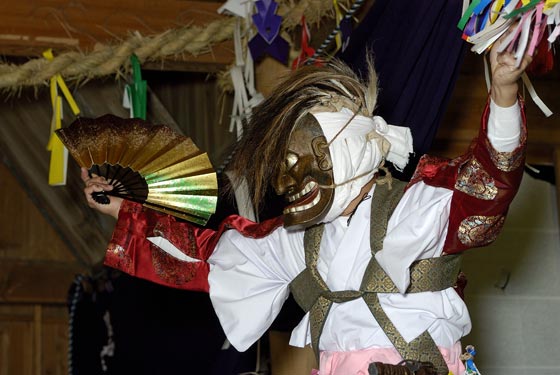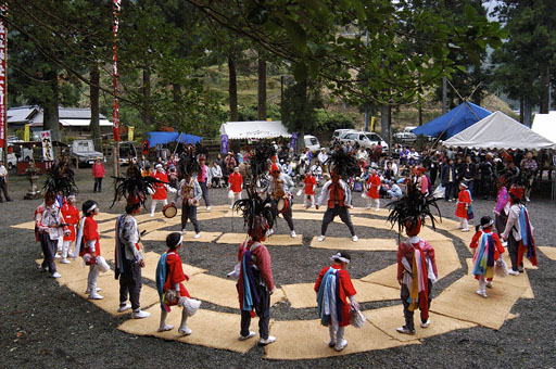高野の舞台、花取り踊り、国の重要無形民俗文化財に指定されている津野山式古式神楽の風景。