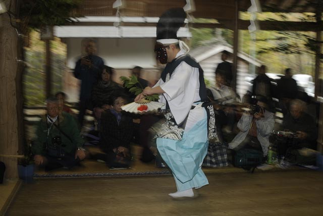 11月23日、池川神社で行われた「池川神楽」。 鳥居をくぐり、200段越えの階段を登ると池川神社。「宮祓」から「天磐土開舞」「四天の舞」、最後の13番「王神立の儀」まで4時間に渡る神楽。 ※2012年11月撮影