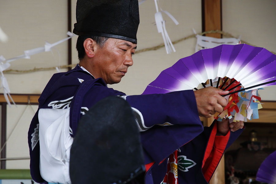愛媛県内子町地区を中心に年間30数回舞われる立川神楽。 平安時代末期の仇討ち「曽我物語」で知られる曽我十郎祐成と弟の曽我五郎時致の首塚がこの乙成地区にあり、その首塚の「曽我 十郎神社大祭」で奉納されました。神楽の奉納は15年ぶりとのこと。※2016年05月22日撮影