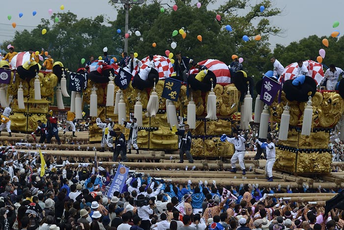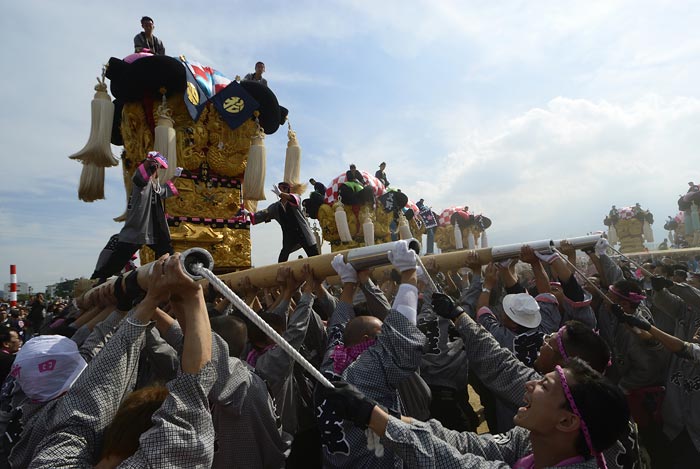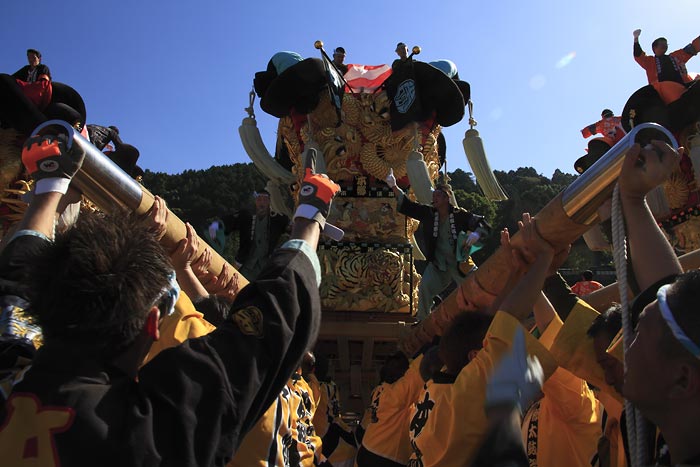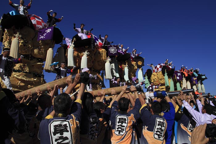 香川県の「ちょうさ」は新居浜の太鼓台に似ているが、香川のそれが「華麗」なイメージに対して新居浜は「勇壮」のイメージ。 「かきくらべ」での統制のとれた動きは、見る者も一体とさせる感動がる。 山根グラウンド、国領川河川敷の「統一寄せ」風景。