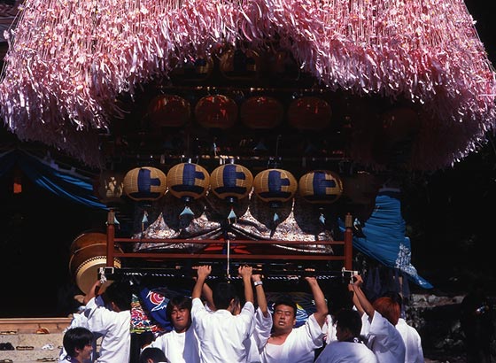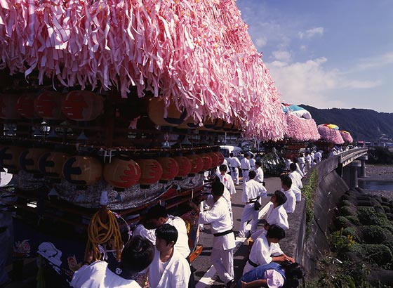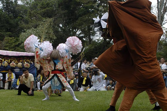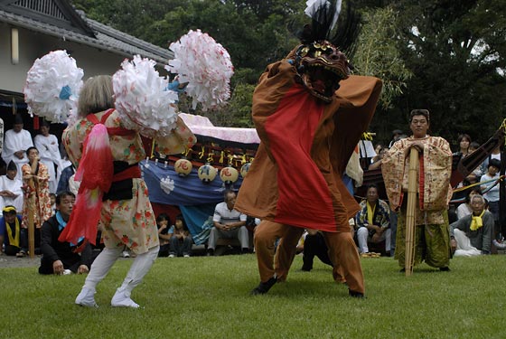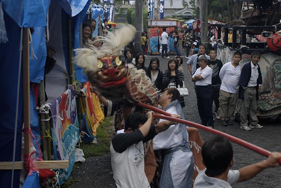 羽根八幡宮秋祭りで隔年に奉納される「中川内の獅子舞」。よく練習された、息のあった「舞」は感動もの。後半は、御田八幡宮秋祭「吉良川の花台」。