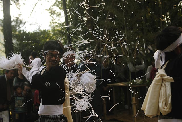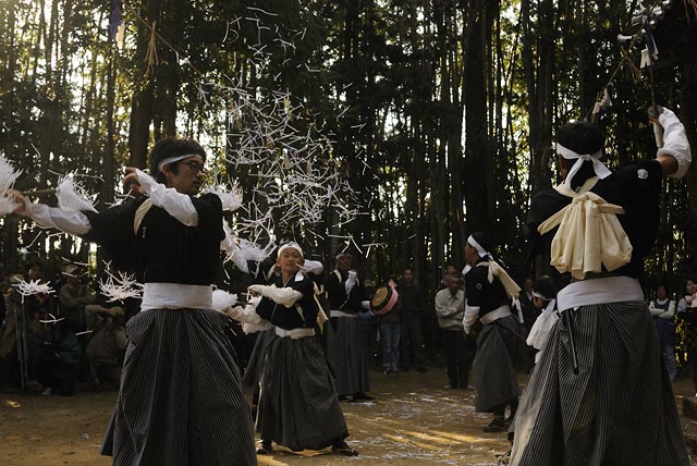 土佐市、西宮八幡宮の「蓮池太刀踊り」を撮影。真剣で舞う太刀踊り。空に舞う紙吹雪が見所。 以前に撮影した時より演者の人数が少なくなっているのが少し寂しい。