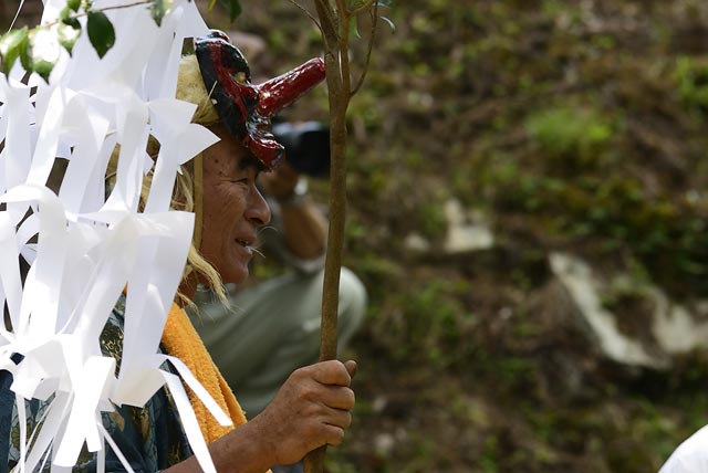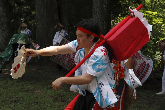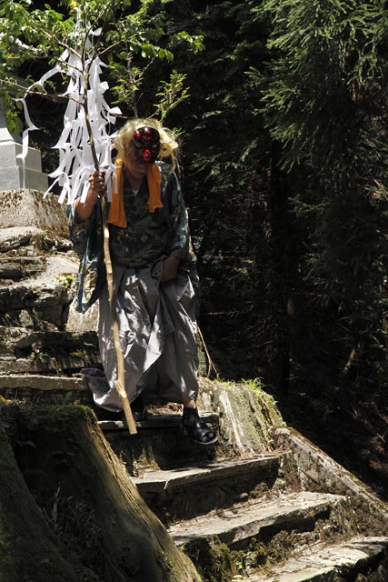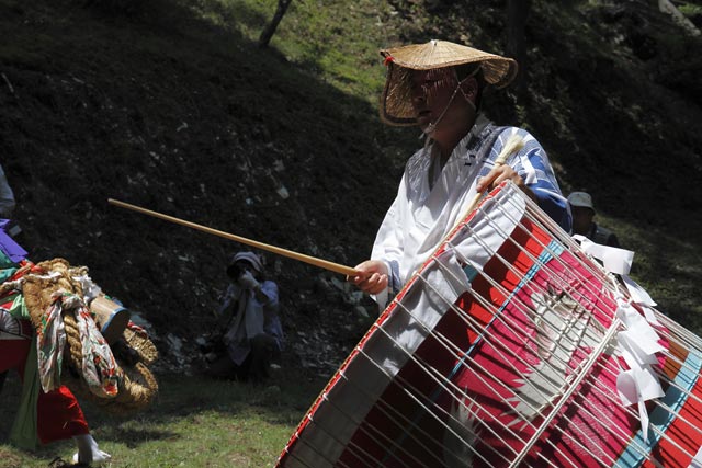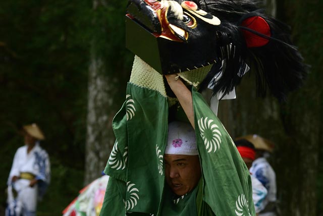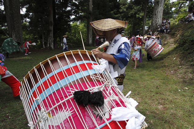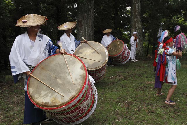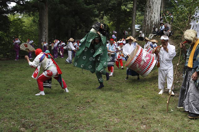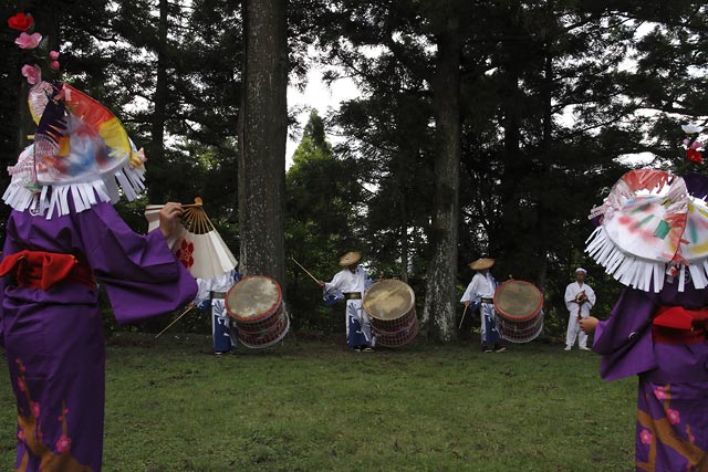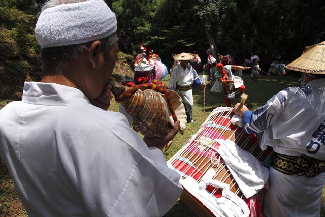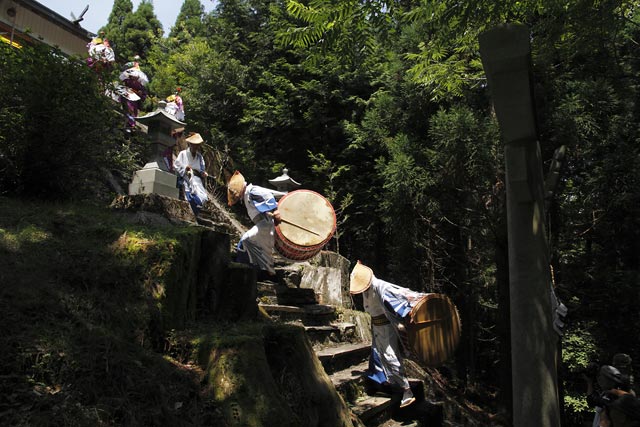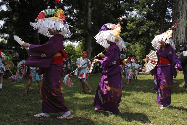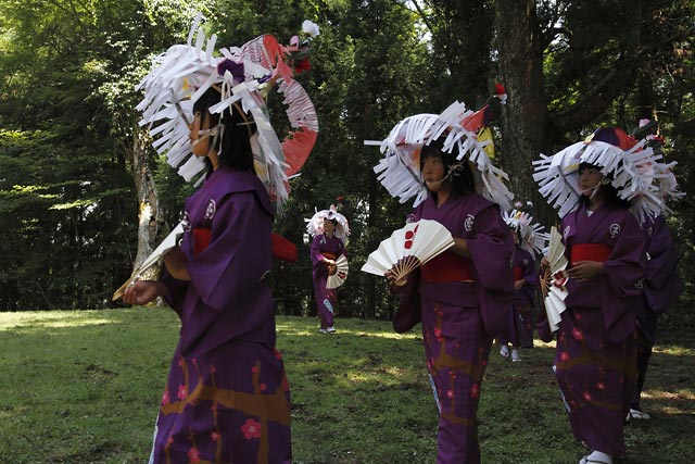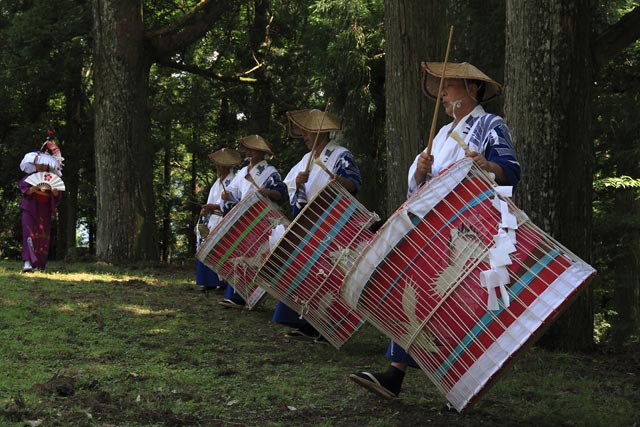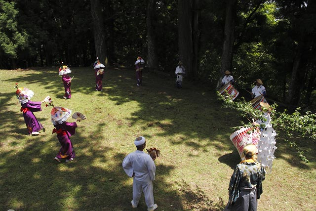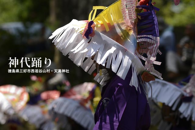 西祖谷山村善徳にある標高1,033mの山頂に天満神社。かずら橋付近から狭い山道を約8km程登る。 菅原道真が、讃岐守在任中(885-889年)に行った雨ごい祈願の踊りが起源との伝承もある。 国指定重要無形民族文化財。