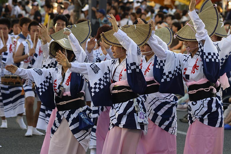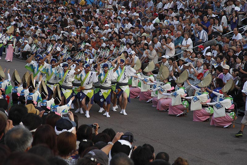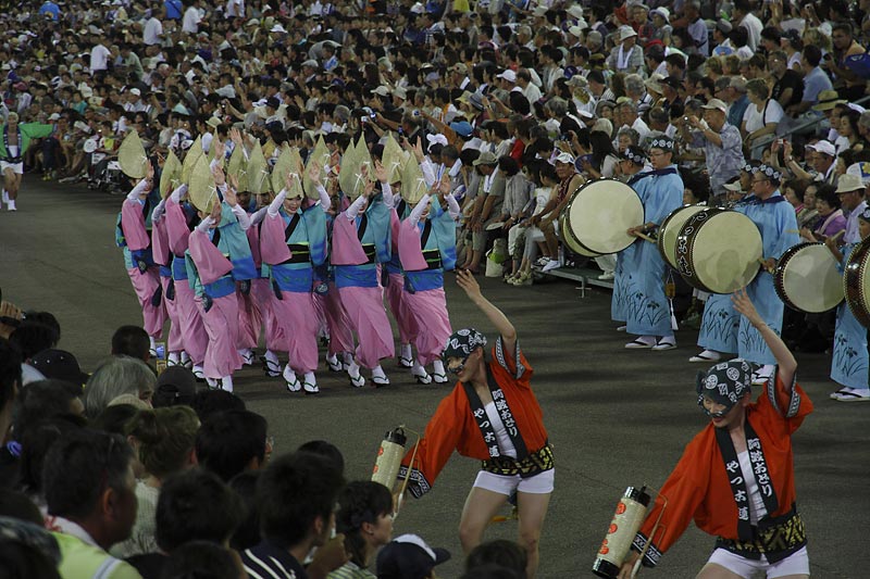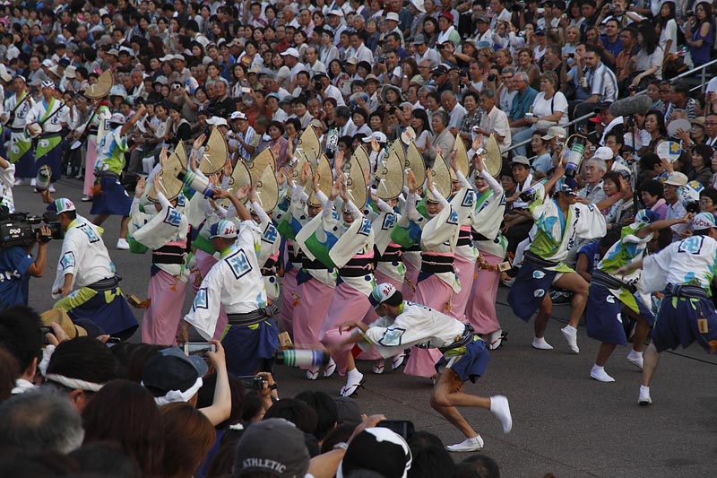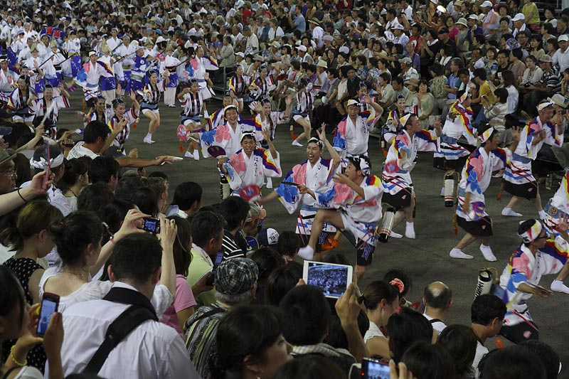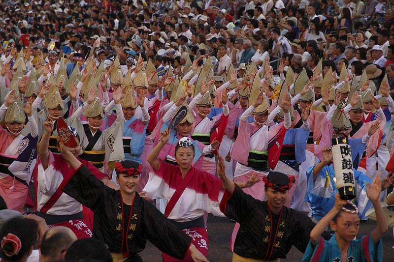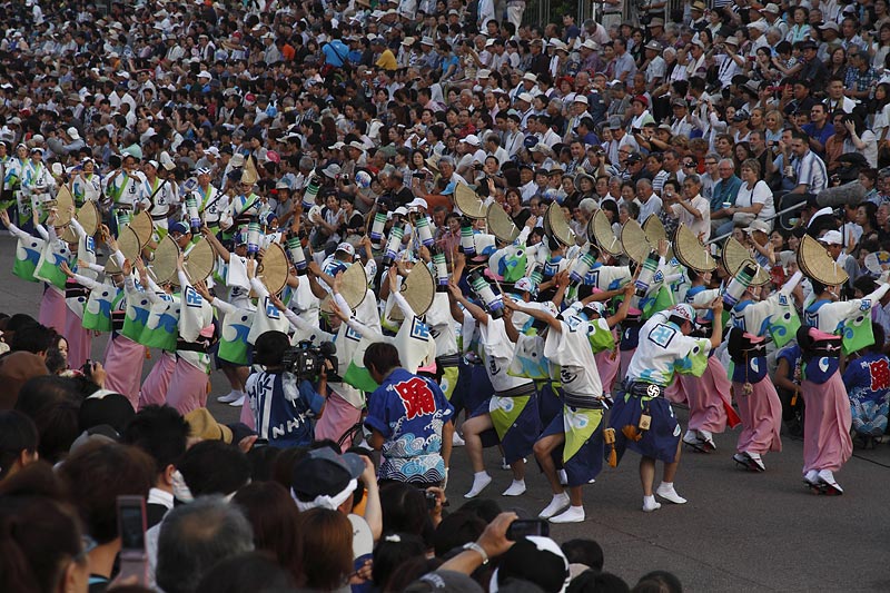 毎年8月12日から15日の4日間の徳島市は人で溢れます。 400年の歴史がある阿波踊り、2015年度の人出123万人。その内県外客61万人(徳島県観光政策課調べ)。演舞場に繰り出した踊り連は延べ860連。文字通り日本最大規模の盆踊りです。